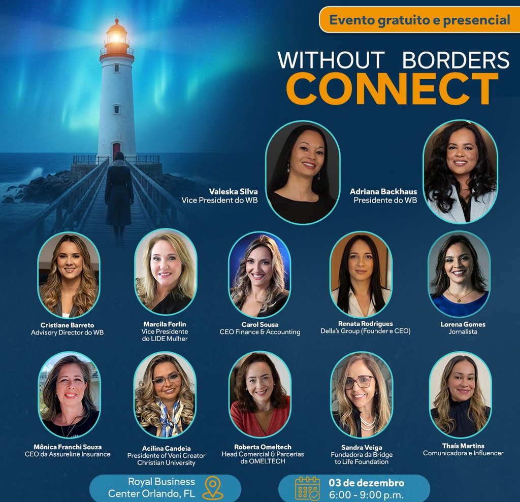The Without Borders Connect 2025 arrives in Orlando this Wednesday, aiming to inspire and empower Brazilian immigrants with practical guidance on careers, entrepreneurship, and legal opportunities in the United States. Hosted at the Royal Business Center in Metrowest, the free event runs from 6:00 to 9:00 p.m. and features a diverse lineup of professionals addressing key challenges and opportunities for the immigrant community.